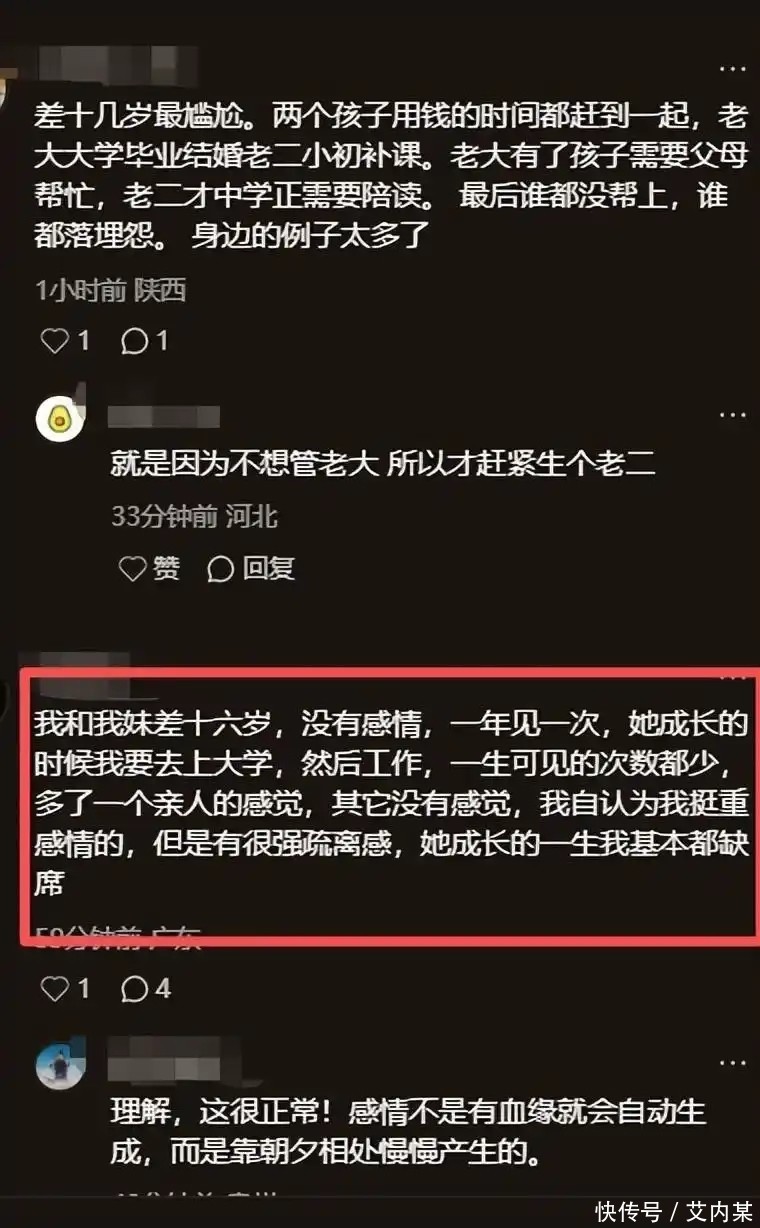 毕业后,一个相差十几岁的弟弟或者妹妹。对于他来说,也是个负担。家长可能会面对,没有钱托举老大,供不起研究生等问题。