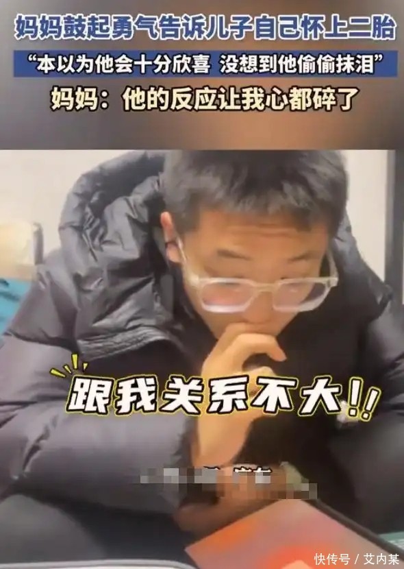大儿子在知道妈妈怀孕,即将生产之后,冷漠的表示,我们相差了十几岁,基本和我没什么关系,然后背过去,偷偷的抹眼泪。